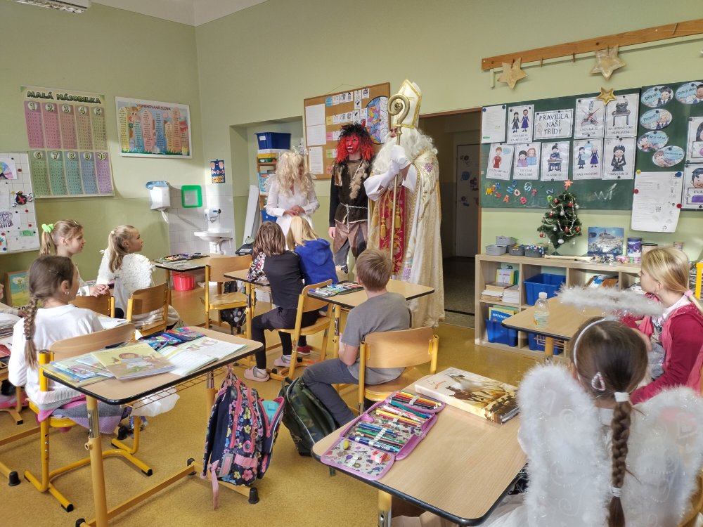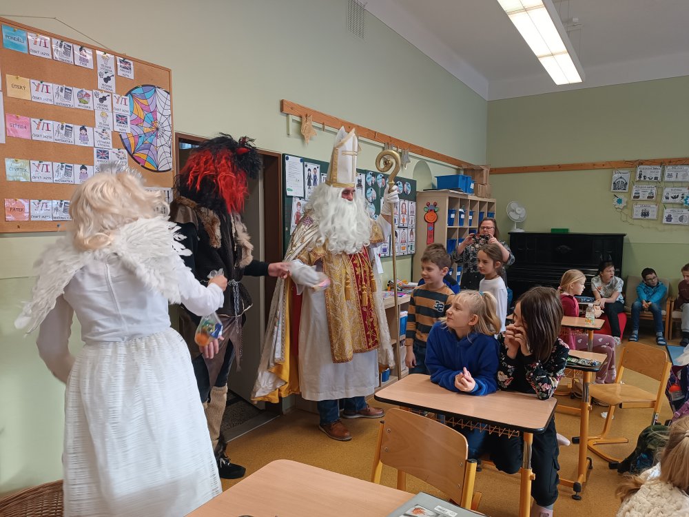 Návštěva Mikuláše s jeho družinou oživila školní dopoledne všem žákům i zaměstnancům školy.