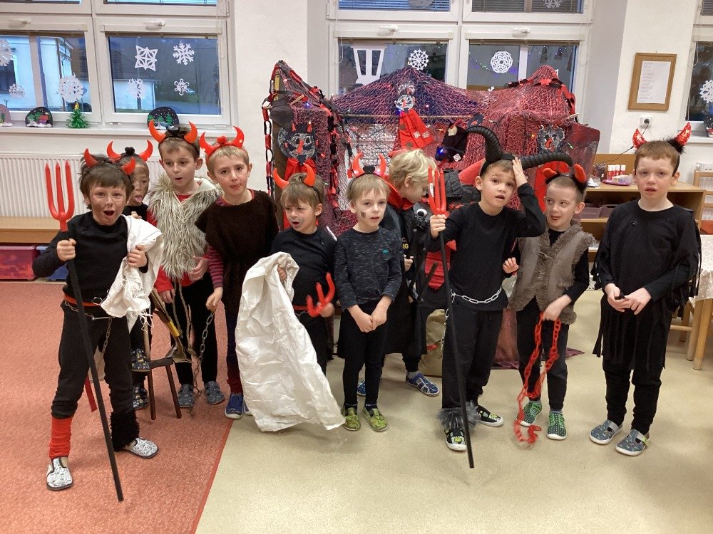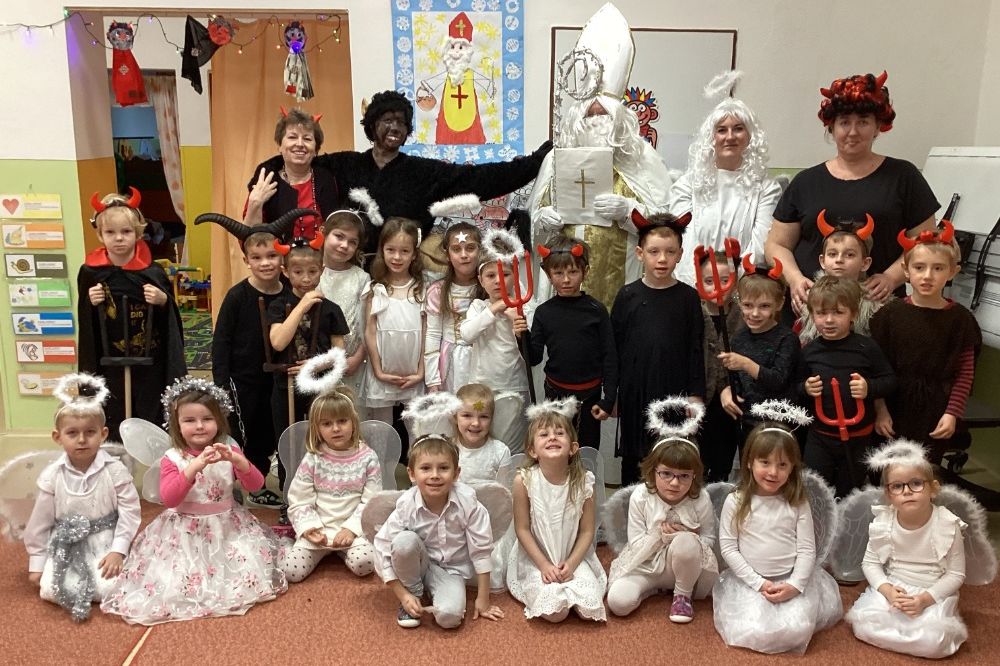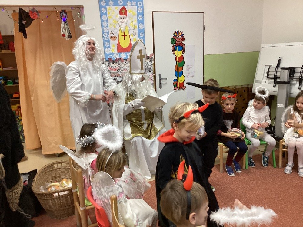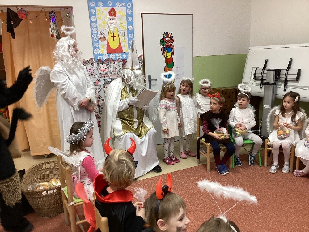 Už od rána panovalo mezi dětmi vzrušení a radostné napětí. Děti v kostýmech netrpělivě vyhlížely, kdy se ozve tradiční zaklepání na dveře. Po příchodu se Mikuláš s dětmi přivítal, pochválil je za snahu, šikovnost i kamarádství během celého roku a připomněl, proč je důležité chovat se k sobě hezky. Některé děti byly odvážné, jiné se zpočátku trochu ostýchaly, ale všechny situaci zvládly velmi statečně. Čert si nikoho neodnesl a anděl rozdával úsměvy i pohlazení.