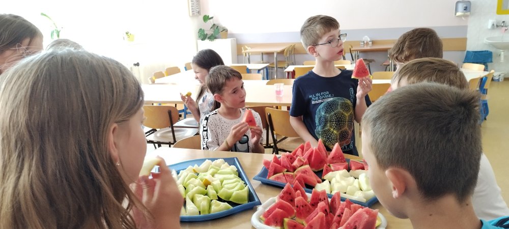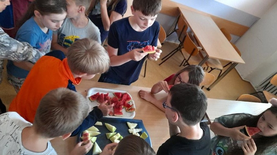 Melounové osvěžení čekalo na žáky základní školy v rámci projektu Ovoce do škol.