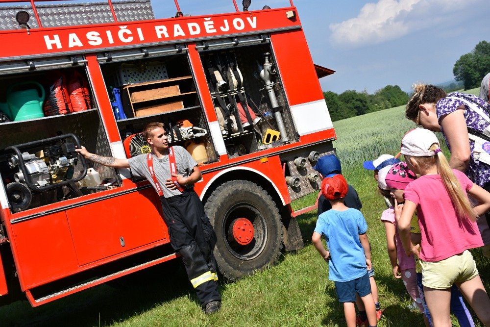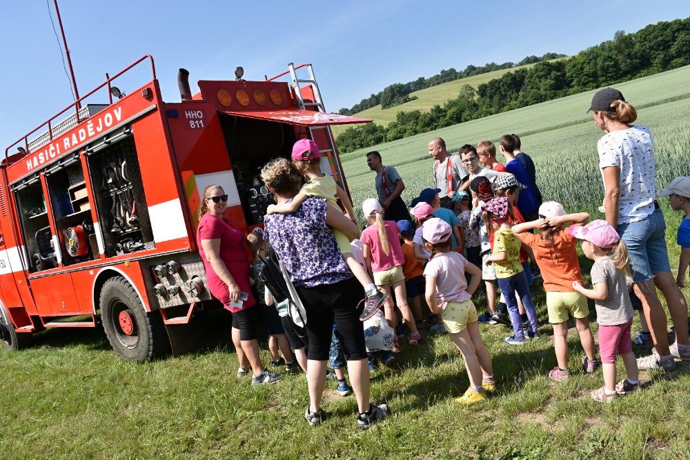 Překvapení v podobě požáru a hasičského zásahu radějovských i strážnických hasičů bylo velkým zpestřením oslavy. Děti si prohlédly hasičské vozy a dokonce se i projely.