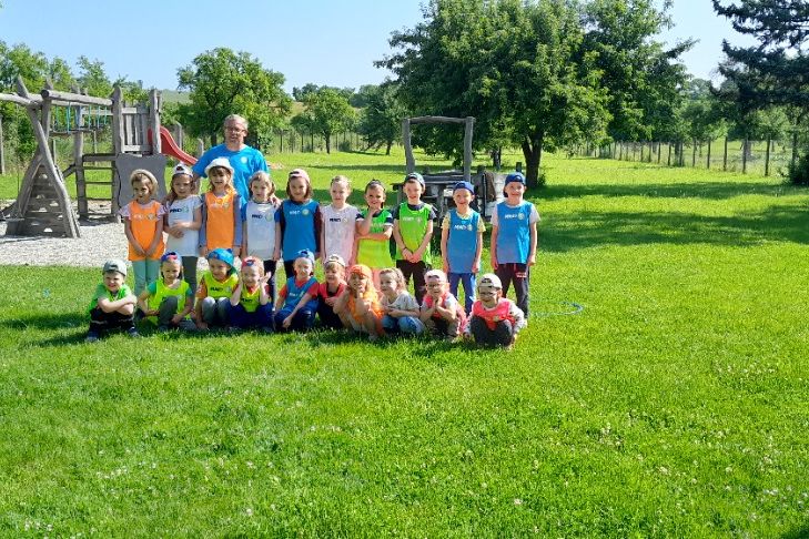 Ve čtvrtek 12. června proběhla poslední hodina Školky v pohybu. Využili jsme pěkného počasí a vyrazili jsme na farskou zahradu. Proběhlo společné focení. Děti se naučily novou hru a užily si soutěže. Prázdniny jsou za dveřmi a my se budeme těšit, že se od září zase potkáme.