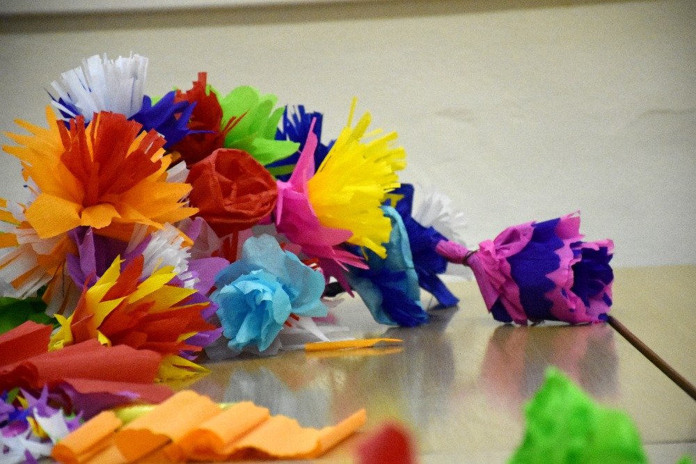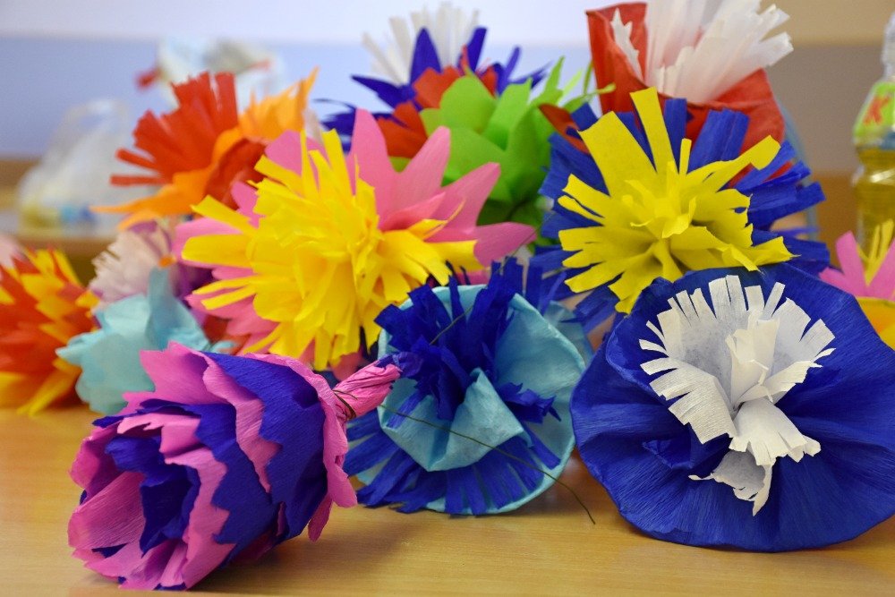 Tvoření papírových růží na radějovská mája