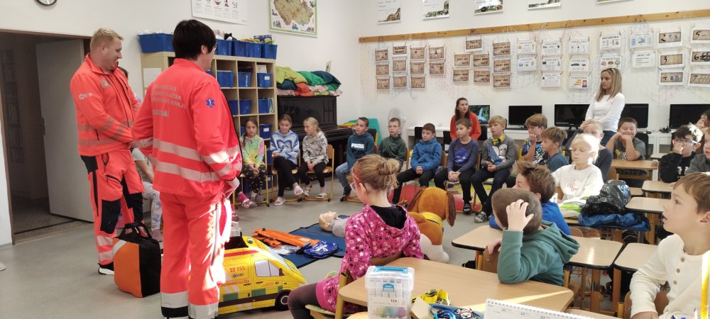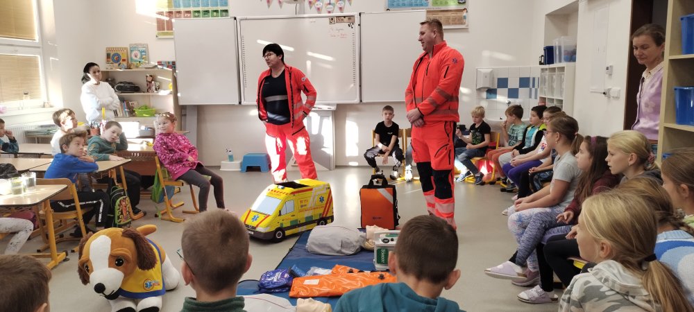 Dnes do naší základní školy zavítali záchranáři z Veselí nad Moravou, aby žákům ukázali, jak funguje jejich práce a naučili je základy první pomoci.