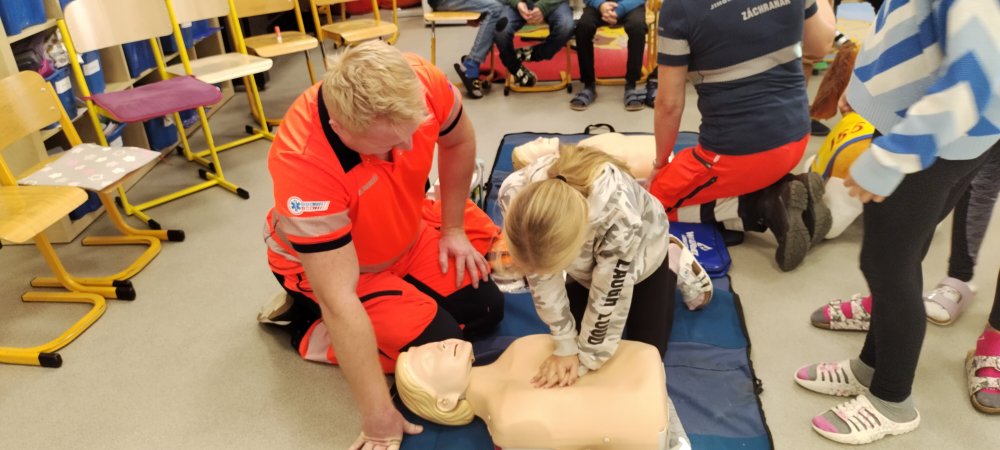 Program začal zajímavou ukázkou, kde záchranáři předvedli, jak správně zavolat na tísňovou linku, jak ošetřit drobná zranění nebo jak provést masáž srdce. Všichni si to mohli sami vyzkoušet na speciálních figurínách.