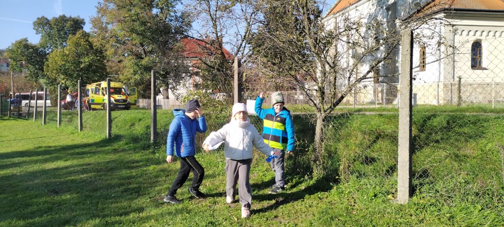 Po ukázce nás záchranáři zavedli k sanitce, kde jsme mohli nahlédnout dovnitř. Ukázali nám vybavení a vysvětlili, jak se používá při převozu pacientů. Všem se nejvíce líbila siréna, kterou jsme si samozřejmě všichni vyzkoušeli.