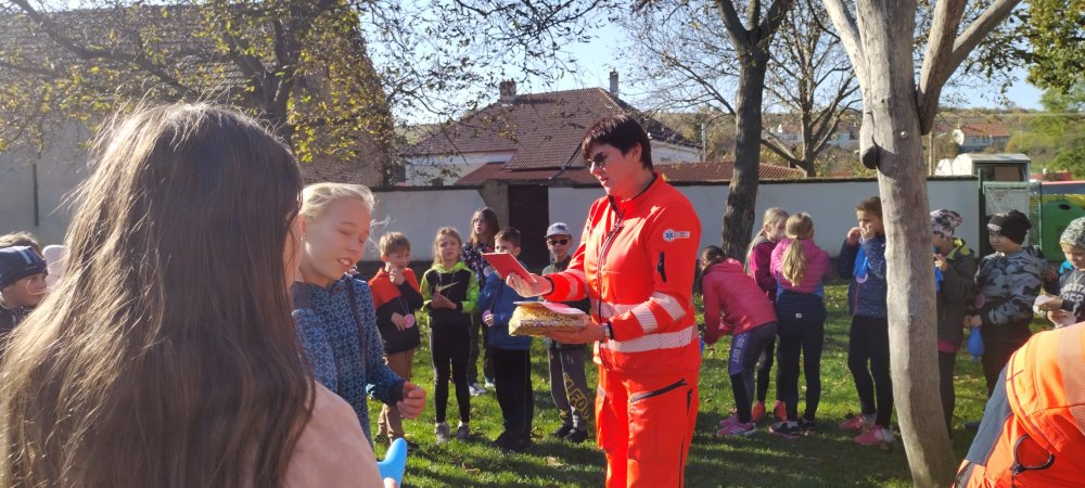 Na závěr si žáci zahráli vědomostní hru v týmech, kde museli správně odpovídat na otázky o první pomoci, zkrátka to, co si zapamatovali. Všem se podařilo vyluštit tajenku - Umím první pomoc. Na konci hry bylo milé zjistit, že většina žáků by dokázala pomoci v kritické situaci nejen sobě, ale i ostatním. Vítězové dostali zaslouženě medaile "Malý hrdina" přímo z rukou záchranářů. Všichni odcházeli s novými znalostmi a zážitky. Bylo to velmi poučné a zábavné dopoledne!
