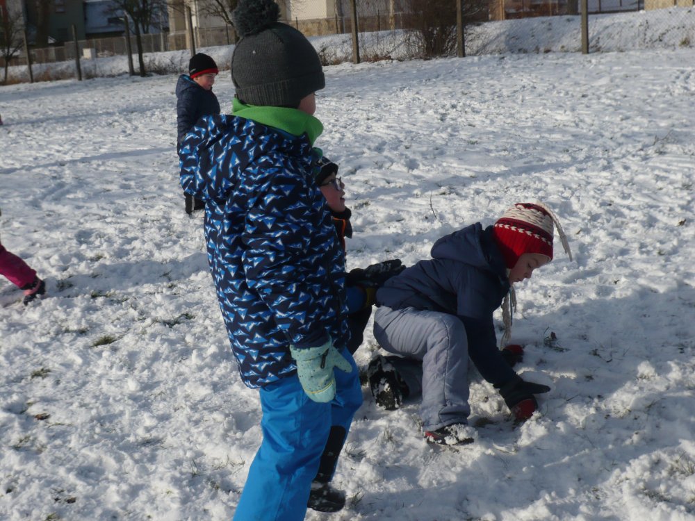 Ve druhém lednovém týdnu konečně napadl sníh a tak si děti vyzkoušely jeho vlastnosti i prakticky.