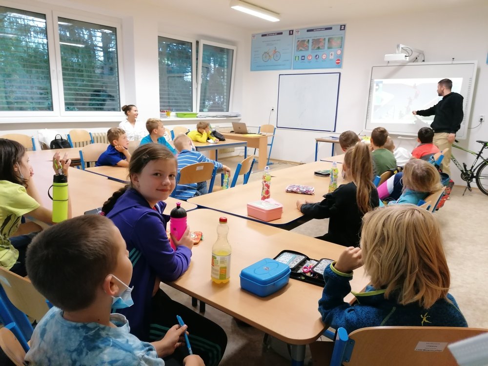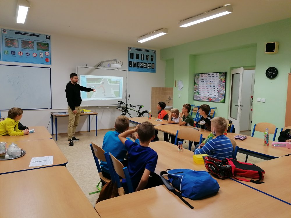 Výuka byla vedena zkušeným lektorem, který proškolené žáky vedl i na dopravním hřišti. Zde si žáci vyzkoušeli jízdu na kolech ve zmenšené modelové síti ulic, silnic a chodníků s různými světelnými semafory. Žáci 5. tříd - Patrik Novák a Michal Šimeček po úspěšném absolvování testu a jízdě na kole získali tzv. průkazku cyklisty. Žáky 4. tříd čeká zkouška v jarním období.