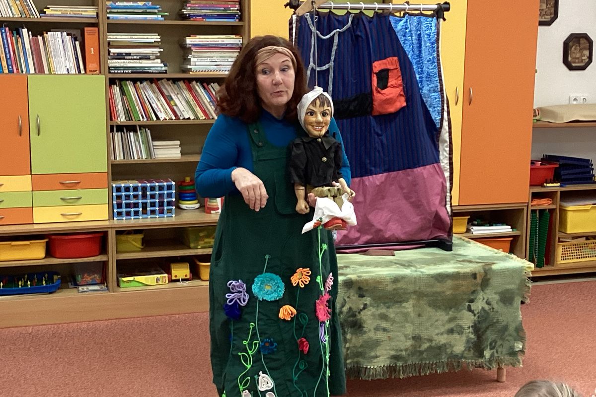 Opět k nám po roce přijela paní loutkoherečka Sasínová se svými maňásky.