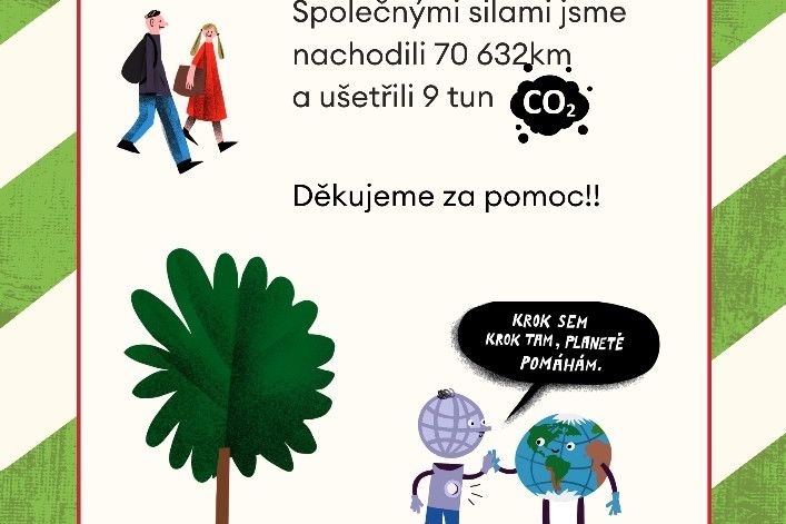 Za celý týden společně žáci nachodili 447 039 kroků, což je přibližně 335 km. Tím jsme se zařadili mezi 12 nejaktivnějších týmů této výzvy. Každý byl oceněn malým dárkem v podobě reflexní odrazky. Celkově se zúčastnilo 133 týmů, které by nachozeným počtem 70 632 km, dvakrát obešli zemi kolem rovníku a ušetřili 9 tun CO2. Všem děkujeme.