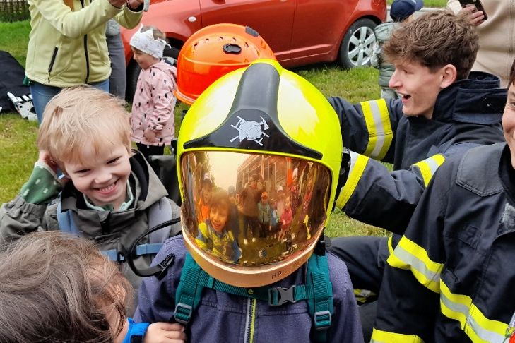 Předvedli jim hasičská auta s celou výbavou, kterou potřebují při zásahu. Děti byly nadšené, že si mohly vyzkoušet hasičské přílby, ovládat skutečný bagr, stříkat vodou na cíl apod. Velký respekt vzbudila ukázka hašení hořícího oleje. Na závěr nás hasiči svezli svými hasičskými auty přímo ke školce. Mockrát děkujeme za pěkně připravené ukázky a krásné dárečky, které děti dostaly od hasičů.