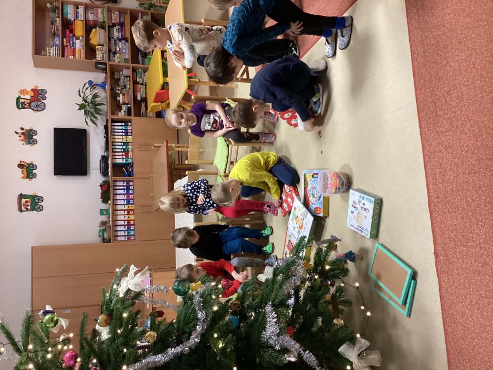 V den, kdy měl Ježíšek přijít, panovalo ve třídě napjaté, ale radostné očekávání. A opravdu – pod vánočním stromečkem se objevily dárečky, které dětem vykouzlily úsměv na tváři. Radost, smích a nadšení zaplnily celou školku. Ježíšku, děkujeme.