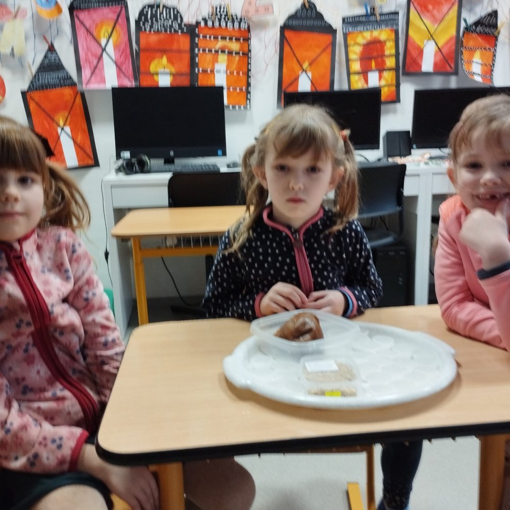 Po přečtení příběhu o významu vánočního cukroví u nás, si žáci připravili své vlastní nepečené cukroví jako čokoládové kuličky, raffaello, karamelové kuličky a cukroví z ovesných vloček a pomeranče. Na svých výtvorech si pak pochutnali.
