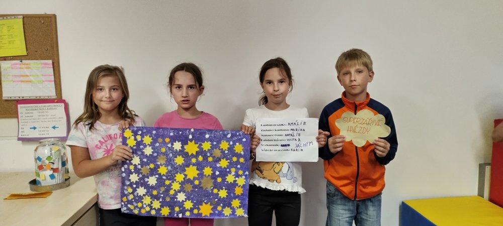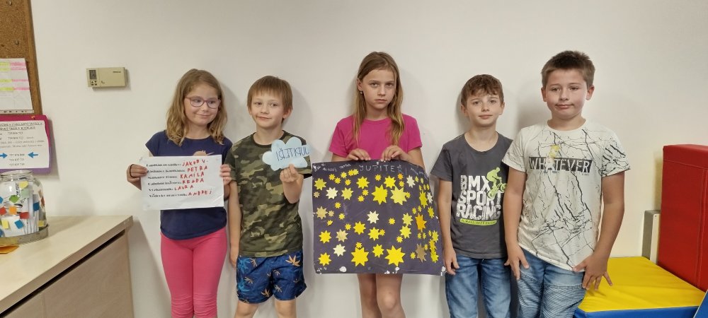 Všichni malí kosmonauti získávali celou dobu z knih, encyklopedií, internetu i vědomostních kvízů a pracovních listů, nejen znalosti teoretické, ale zejména zlepšovali svou fyzickou kondici pomocí zábavných pohybových her a soutěží a usilovali o co nejlepší vzájemné vztahy celé vesmírné posádky. Naše čtyři týmy – Jupiteři, Kosmičtí pejsci, Super zářivé hvězdy i Kosmický tým – během všech aktivit ukázali, že se umí s radostí zapojit do společné činnosti a pozitivně se navzájem podpořit. Díky této společné práci se všem podařilo zaplnit vesmírnou oblohu hvězdami a získat tak při závěrečné dobrodružinové párty zaslouženou odměnu. Tento školní rok se opět vydařil. Pokud jste některé naše aktivity nestihli zaznamenat, můžete se k nim díky fotografické dokumentaci na facebooku a instagramu vrátit.