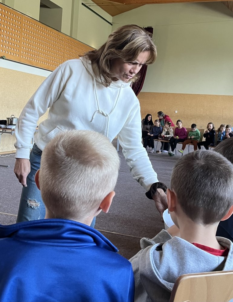 Součástí besedy byla také praktická část – žáci si sami připravili zdravou pochoutku z jogurtu, pohanky a medu, kterou si společně vychutnali. Nechyběla ani krátká rozcvička, která žákům připomněla, že pohyb je nedílnou součástí zdravého životního stylu.