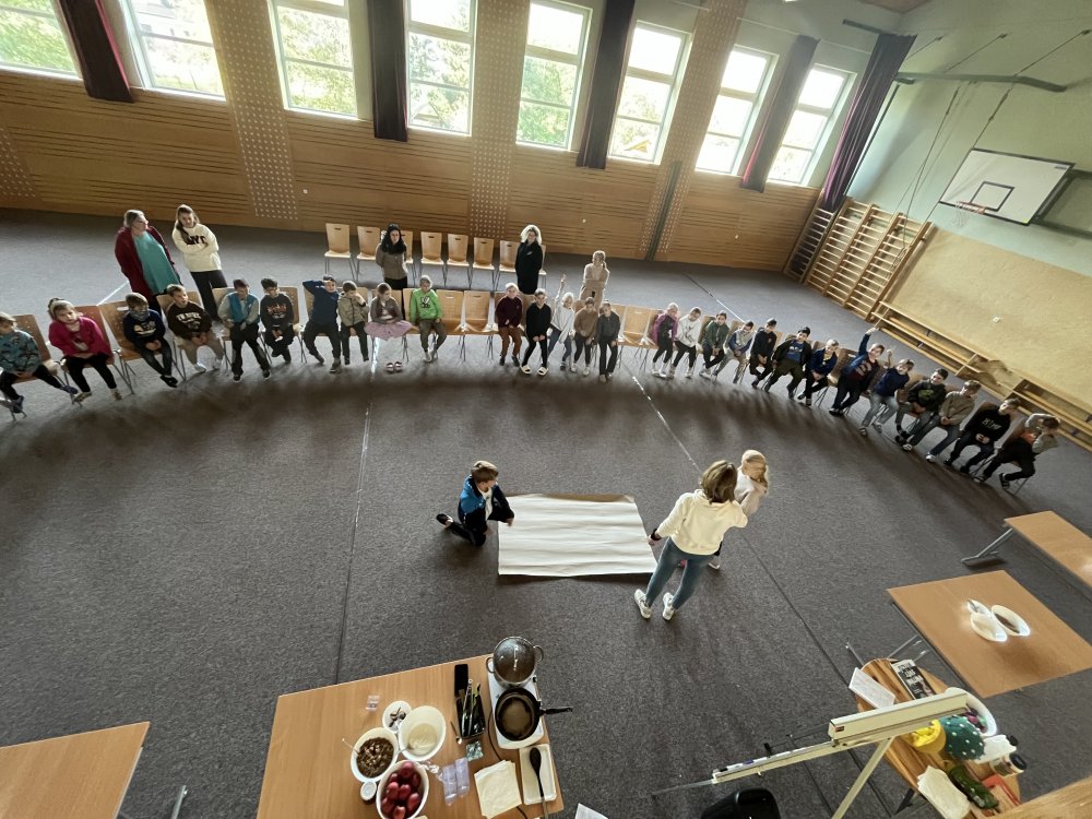Žáci se přiměřenou formou seznámili s tím, jak funguje trávicí systém člověka a jak jednotlivé potraviny ovlivňují lidský organismus. Dozvěděli se, proč je důležité jíst pestrou stravu, dbát na pitný režim a hledat rovnováhu mezi pohybem a odpočinkem.