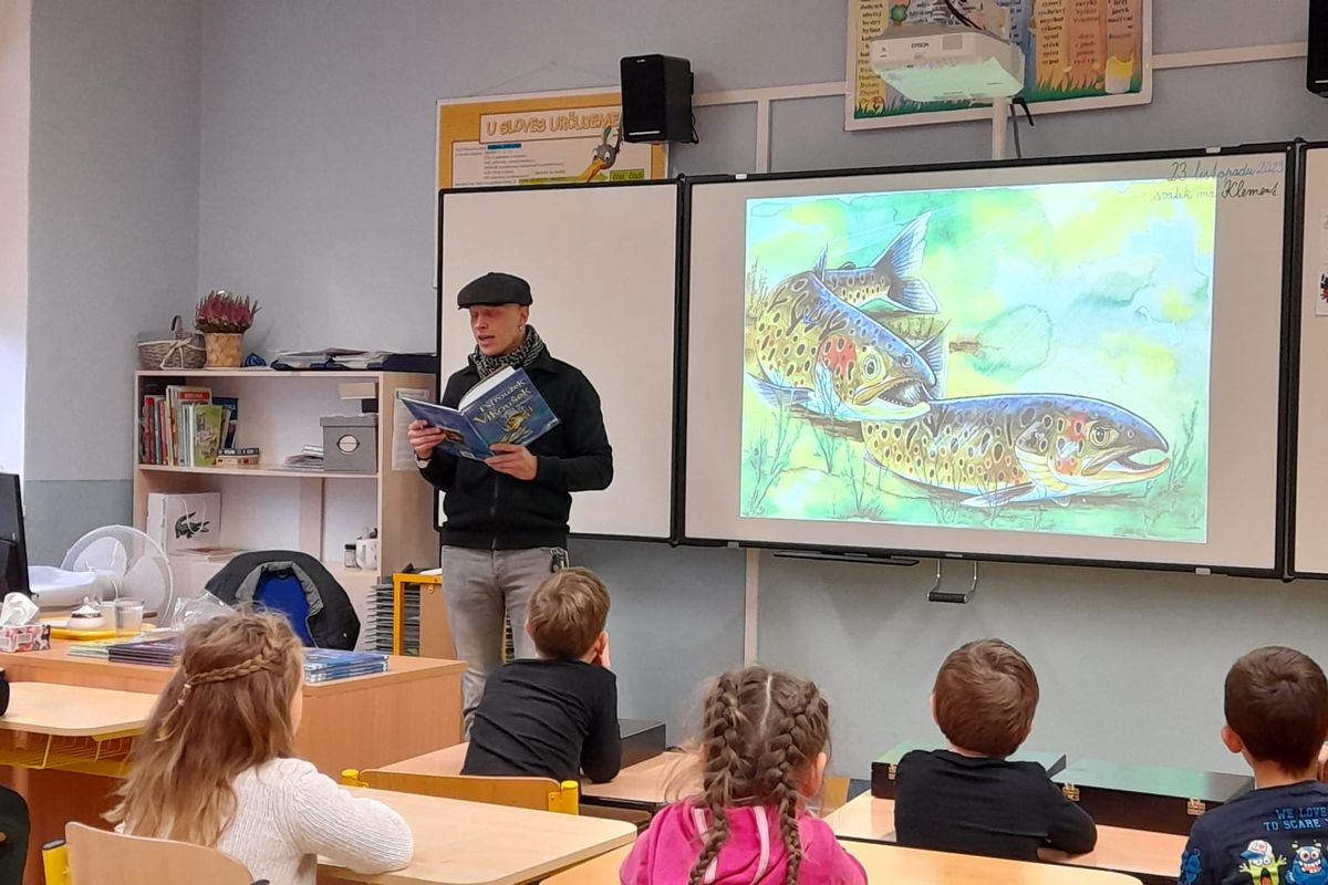 V listopadu jsme absolvovali besedu se spisovatelem Janem Opatřilem. Autor představil knihy o kapříku Metlíkovi, které byly inspirovány jeho zážitky z rybaření v dětství, ke kterému ho přivedl jeho dědeček.