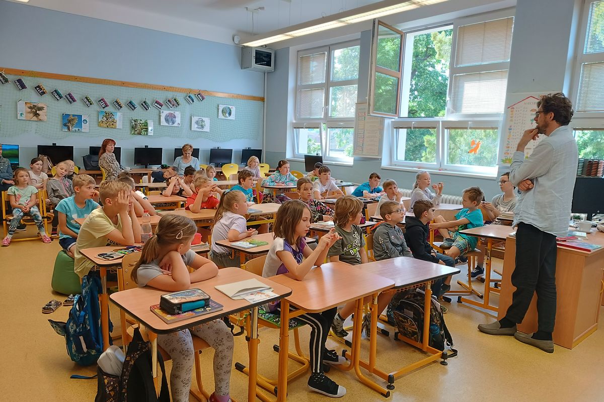 V pondělí 12. června naši školu navštívil básník, publicista, překladatel a autor knih pro děti Radek Malý.