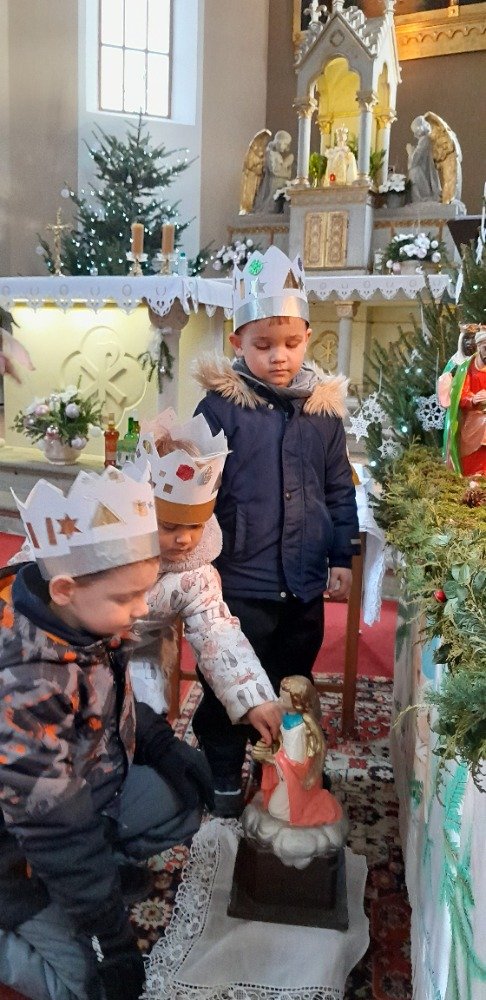 Ve školce jsme si povídali o svátku Tří králů a o Tříkrálové sbírce. Dětem jsme přiblížili význam sbírky, která se pořádá na pomoc potřebným lidem a také obchůzku skupinek po dědině za účelem sbírky. U betléma v kostele si děti na Tři krále zahrály. Nasadily si papírovou královskou korunu a mohly vhodit do pokladničky andělíčkovi drobné mince, které si z domu přinesly. Na závěr jsme si společně zazpívali písničku „My tři králové."