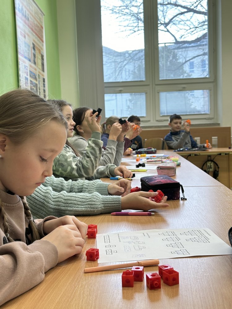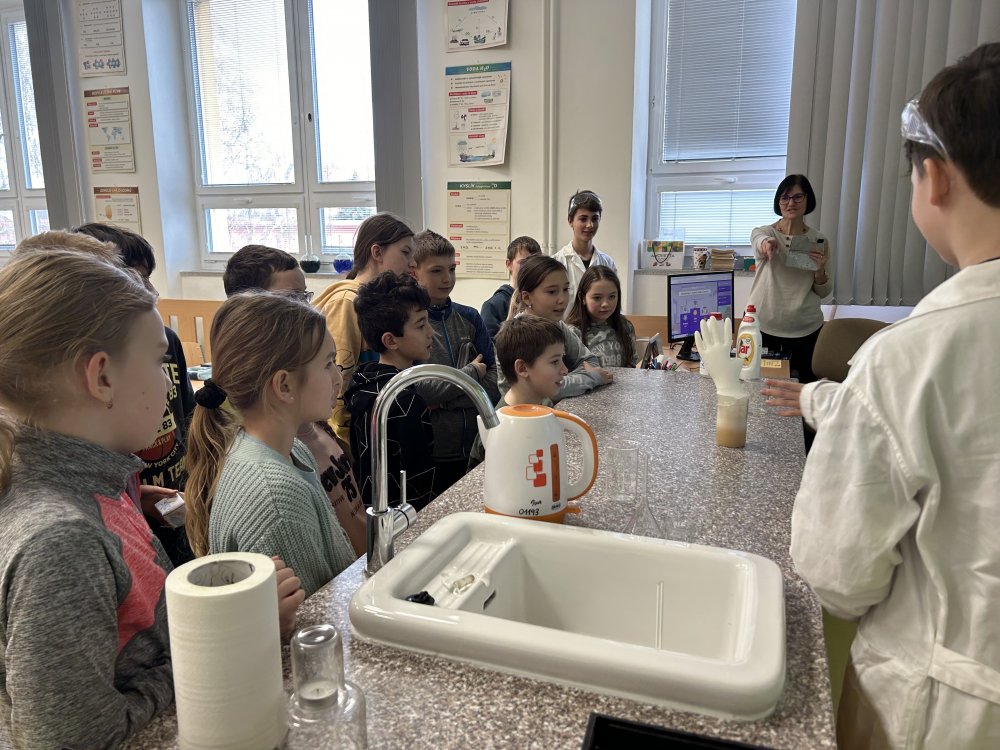 Žáci absolvovali hodinu angličtiny, matematiky, kde si vyzkoušeli počítání metodou Hejného a v poslední hodině jsme zavítali do učebny fyziky/chemie, kde jsme viděli pokusy od samotných žáků osmé třídy a na závěr si zahráli aktivitu na tabletech.
