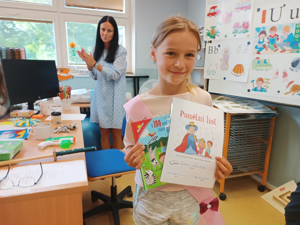 Čtení představuje jednu z nejnáročnějších disciplín ve škole. Je to prostředek vzdělávání, získávání informací i prožívání krásných příběhů. O tom, že to letošní prvňáčci zvládli, nás přesvědčila pohádková zkouška. Odměnou jim byly památeční šerpy a krásné knížky. Přejeme prvňáčkům spoustu zážitků a dobodružství s dalšími přečtenými knihami.