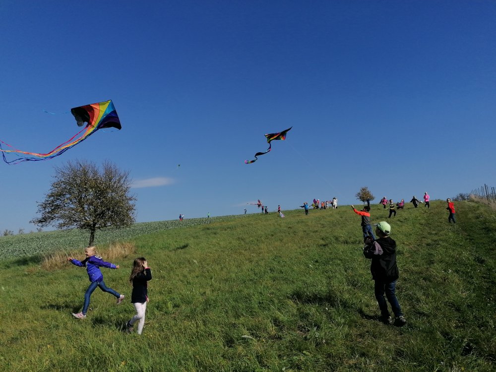 Nebe téměř bez mráčků, příjemné podzimní teplo a fouká vítr! Ideální podmínky pro to, aby na oblohu nad Radějovem opět vzlétli draci! Dne 5. října si tuto skvělou tradiční zábavu nenechali ujít ani žáci ZŠ Radějov.