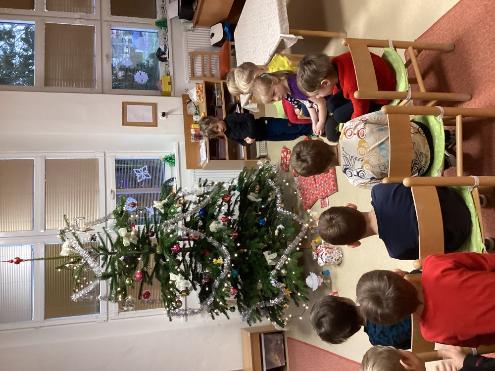 V den, kdy měl Ježíšek přijít, panovalo ve třídě napjaté, ale radostné očekávání. A opravdu – pod vánočním stromečkem se objevily dárečky, které dětem vykouzlily úsměv na tváři. Radost, smích a nadšení zaplnily celou školku. Ježíšku, děkujeme.