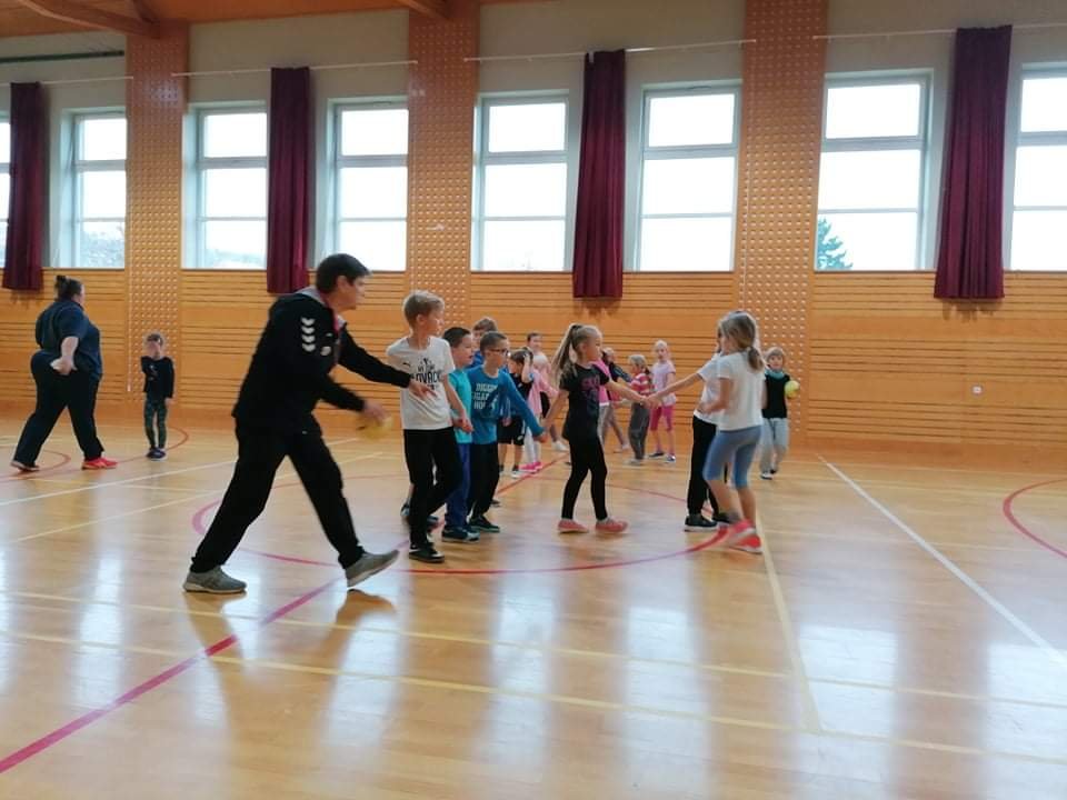 Sportovním dopolednem žáky provedla trenérka házené paní Mgr. Marie Knitlová z Domu dětí a mládeže Strážnice spolu s krajskou trenérkou za Jihomoravský kraj paní Irenou Kupkovou. Žáci si vyzkoušeli různé techniky při práci s míčem, rychlostní pohybové aktivity, střelbu na bránu nebo samotnou hru házené. Žáci projevovali nadšení a neskrývali radost z pohybu.