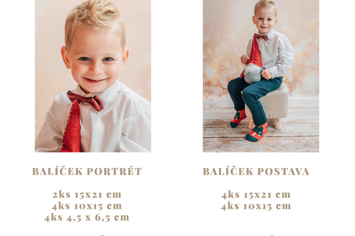 Balíček s portréty - 1. varianta - 390 Kč, balíček s postavou - 2. varianta - 290 Kč. Komplet portrét i postava - 3. varianta - 590 Kč. Zájemci se mohou nahlásit u tř. učitelek v základní škole. Termín fotografování upřesníme.