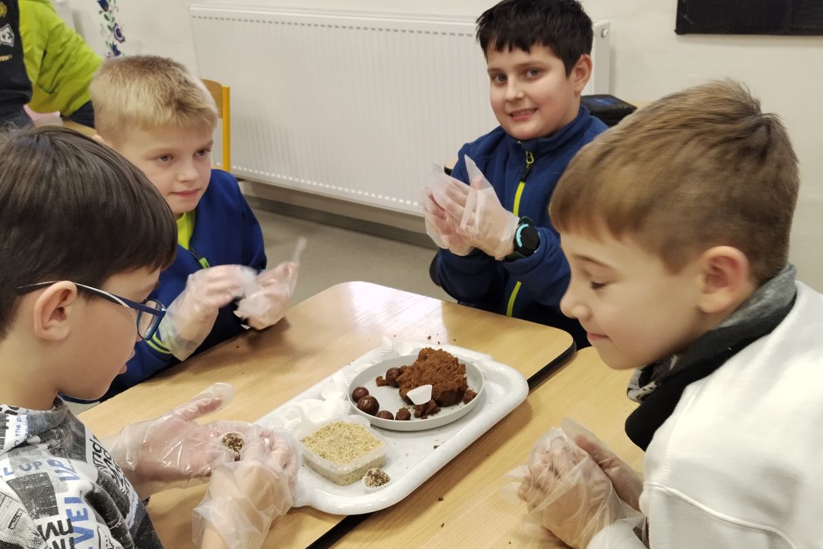 Po přečtení příběhu o významu vánočního cukroví u nás, si žáci připravili své vlastní nepečené cukroví jako čokoládové kuličky, raffaello, karamelové kuličky a cukroví z ovesných vloček a pomeranče. Na svých výtvorech si pak pochutnali.
