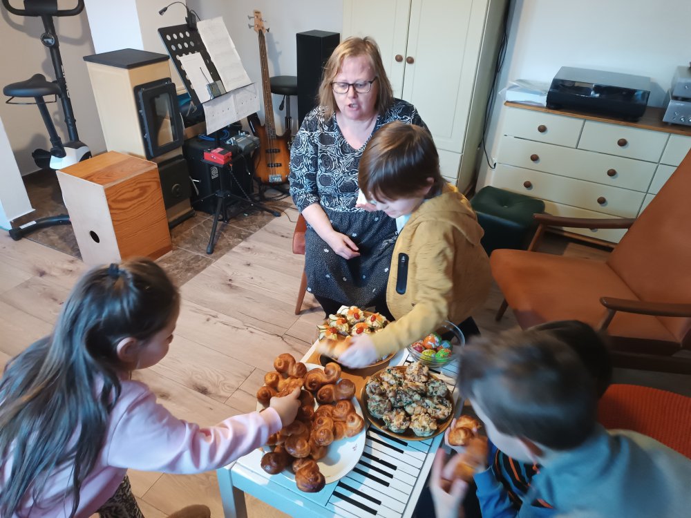Příjemné dopoledne strávené barvením vajíček tradičním způsobem, pečením jidášů nebo zpíváním jarních písniček, nás provázelo u naší milé hostitelky. Moc děkujeme za pozvání.