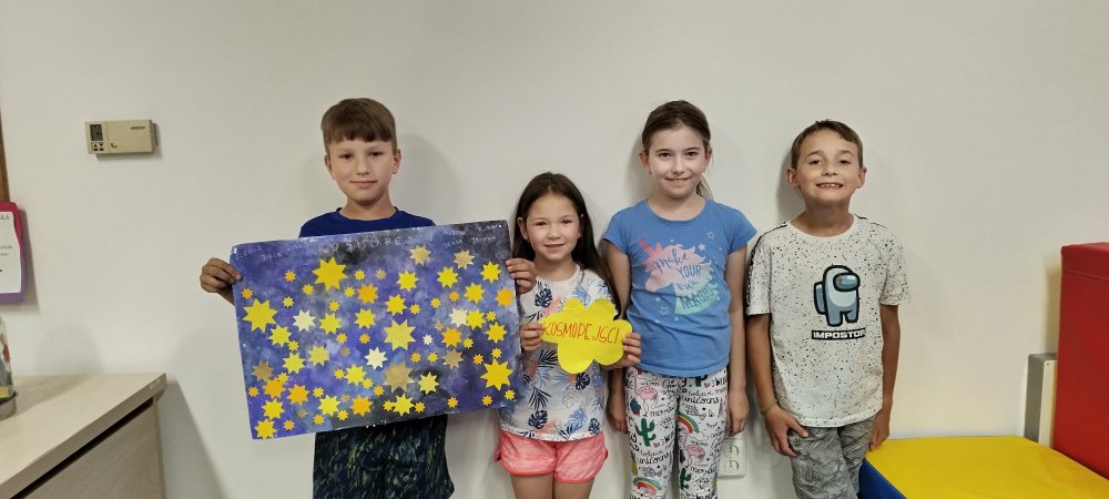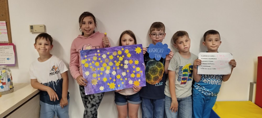 Všichni malí kosmonauti získávali celou dobu z knih, encyklopedií, internetu i vědomostních kvízů a pracovních listů, nejen znalosti teoretické, ale zejména zlepšovali svou fyzickou kondici pomocí zábavných pohybových her a soutěží a usilovali o co nejlepší vzájemné vztahy celé vesmírné posádky. Naše čtyři týmy – Jupiteři, Kosmičtí pejsci, Super zářivé hvězdy i Kosmický tým – během všech aktivit ukázali, že se umí s radostí zapojit do společné činnosti a pozitivně se navzájem podpořit. Díky této společné práci se všem podařilo zaplnit vesmírnou oblohu hvězdami a získat tak při závěrečné dobrodružinové párty zaslouženou odměnu. Tento školní rok se opět vydařil. Pokud jste některé naše aktivity nestihli zaznamenat, můžete se k nim díky fotografické dokumentaci na facebooku a instagramu vrátit.