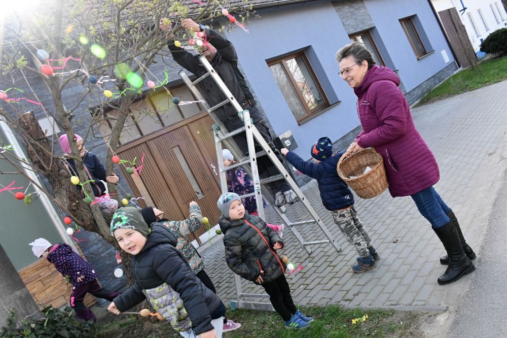 Zdobení velikonočního stromu v Radějově a připomenutí velikonočních tradic s výtvarným kroužkem.